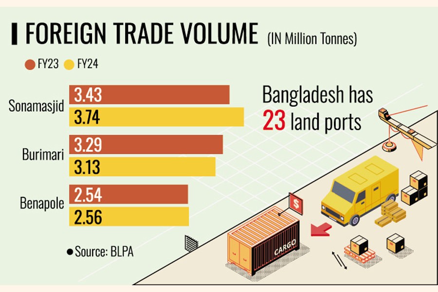 Meanwhile, Benapole facilitated 2.54 million tonnes of goods in FY2023 and 2.56 million tonnes in FY2024, reads the BLPA data.