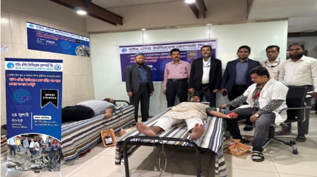 A blood donation program was held at the head office of South Asia Insurance Company Limited for the injured in the plane crash at Milestone School and College.