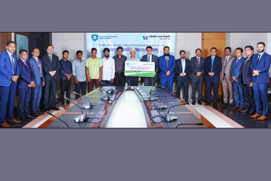 In presence of Nuruddin Md Sadeque Hossain, Managing Director of Southeast Bank handed over financial assistance to Imrul Hasan, director of Community Development Centre (CODEC).
