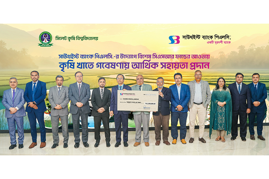 Southeast Bank PLC has extended financial support under its Special CSR Fund to Sylhet Agricultural University to facilitate research activities, according to a press statement Wednesday.