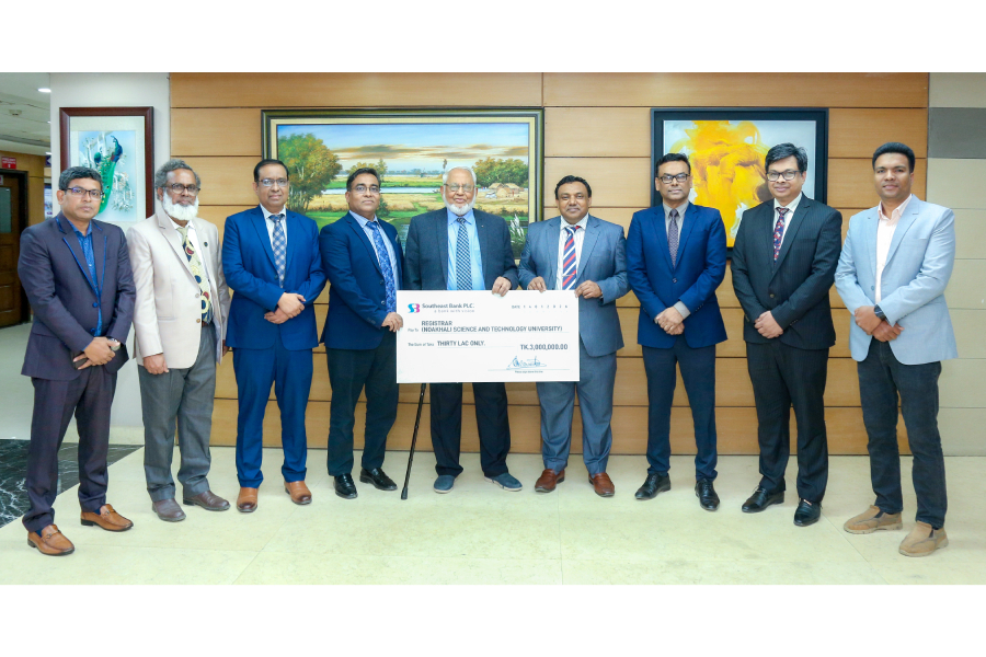 M.A. Kashem, Chairman of Southeast Bank PLC. handed over the financial assistance cheque to the Professor Mohammad Ismail, Ph.D, Vice Chancellor of Noakhali Science and Technology University in the event, according to a media release.