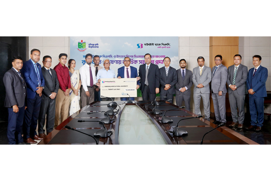 Southeast Bank PLC has provided financial support to Habiganj Agricultural University for agricultural research under special CSR fund. Financial assistance has been handed over to Professor Md Abdul Baset, Vice-Chancellor of Habiganj Agricultural University in Presence of Nuruddin Md. Sadeque Hossain, Managing Director, Southeast Bank PLC, says a press release.
