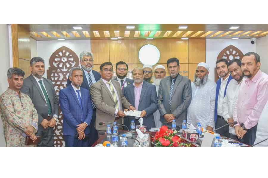 Md. Musfiqur Rahman, EVP and Head of Corporate Affairs and CSR Department of Southeast Bank PLC., handed over the sponsorship cheque to Syed Golam Sarwar, President of the Hajj Agencies Association of Bangladesh (HAAB), at a function held recently at the Hajj Agencies Association of Bangladesh (HAAB) head office in Dhaka.