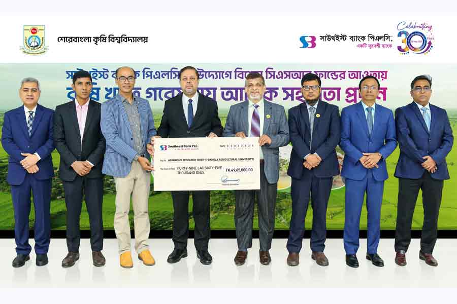 As part of its corporate social responsibility (CSR), Southeast Bank PLC has extended special financial support under its special CSR fund to Sher-e-Bangla Agricultural University for conducting research activities.