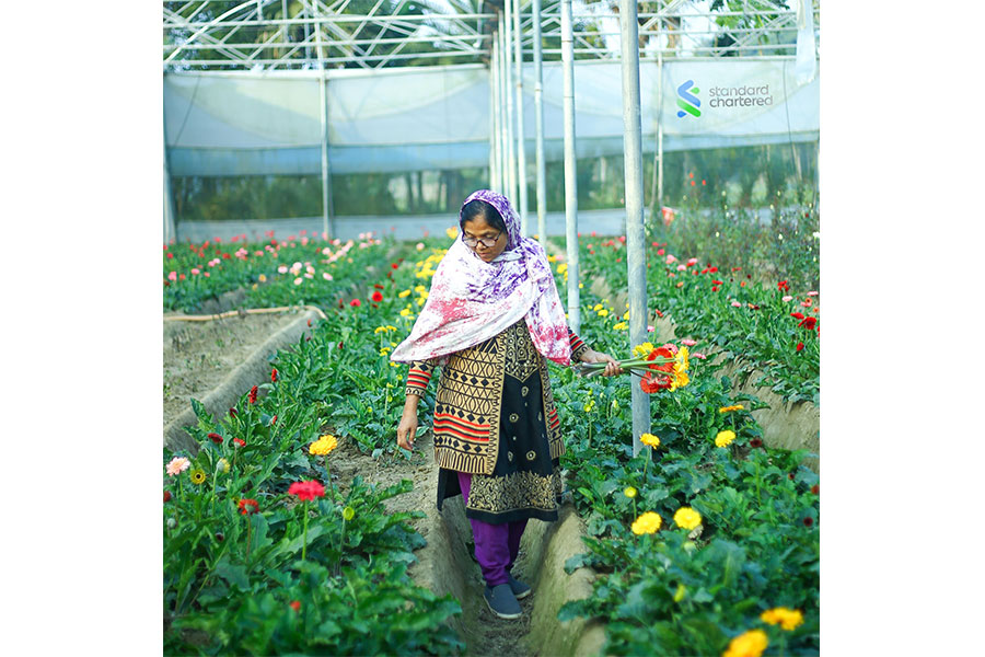 Standard Chartered Bangladesh and Khulna Mukti Seba Sangstha (KMSS) have partnered to support Jashore’s female farmers in entrepreneurial progress to cultivate high-value flower crops.