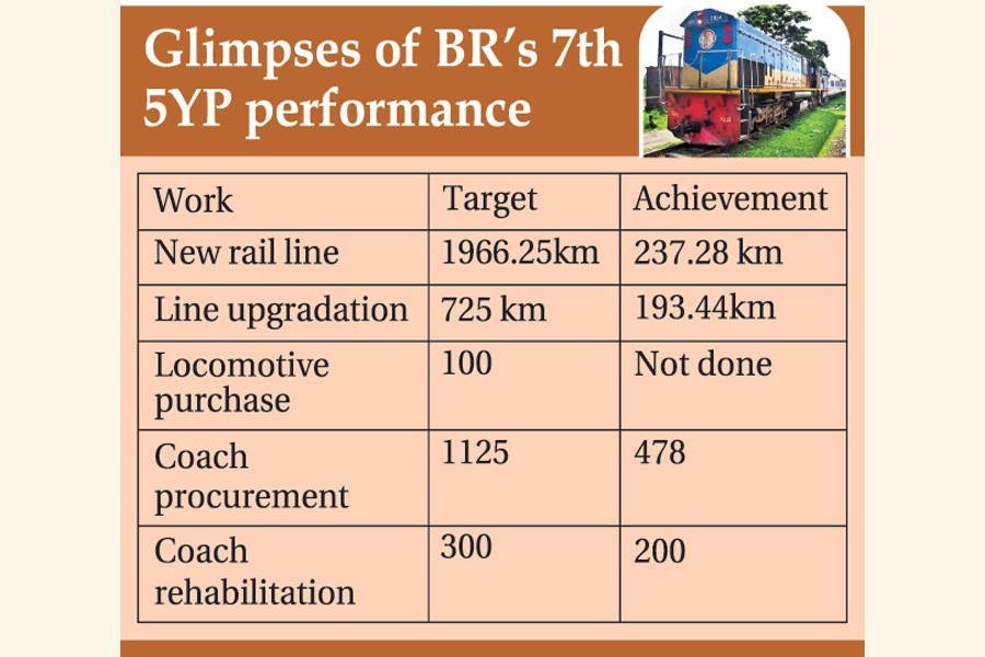 Sources said the BR failed to attain the new line development target due to a delay in executing costly projects like Dohazari-Cox's Bazar rail line, Padma rail link and Khulna-Mongla port rail link.