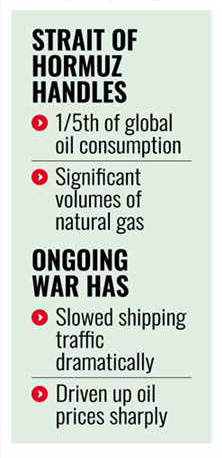 The strait handles about one-fifth of global oil consumption, along with significant volumes of natural gas.