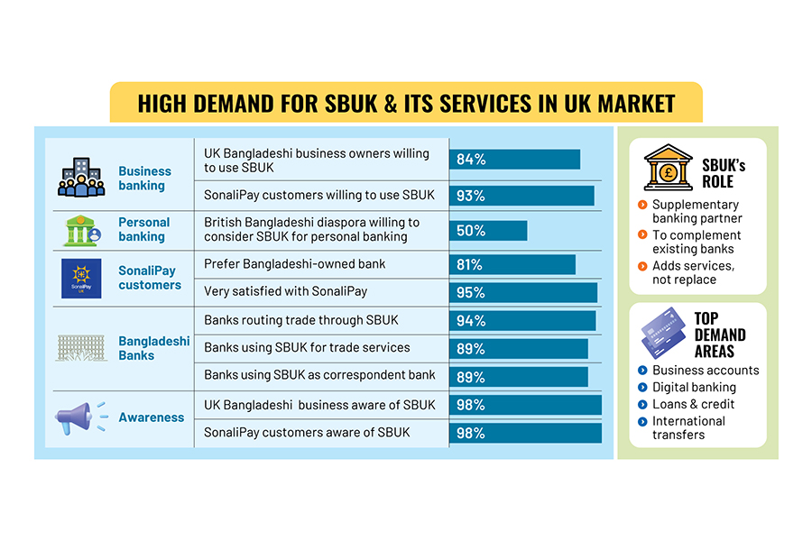 The findings indicate strong and measurable demand for SBUK’s services across multiple customer segments, including individual consumers, small and medium-sized businesses, existing SonaliPay customers and Bangladeshi banks involved in cross-border trade.