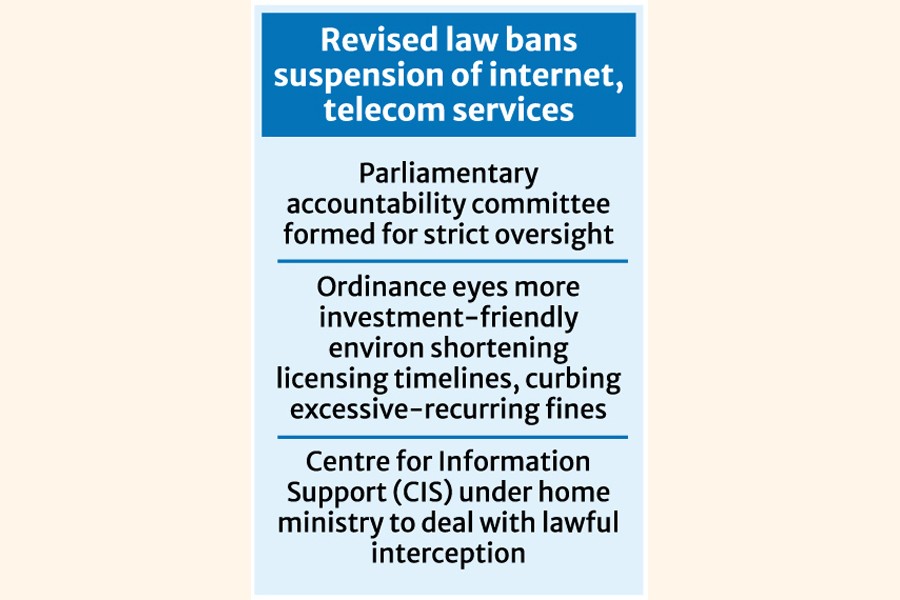 Sweeping reforms in Bangladesh's telecommunications regulation and surveillance regime are coming in an amended law as the interim government endorses an ordinance that proscribes services suspension, in particular.