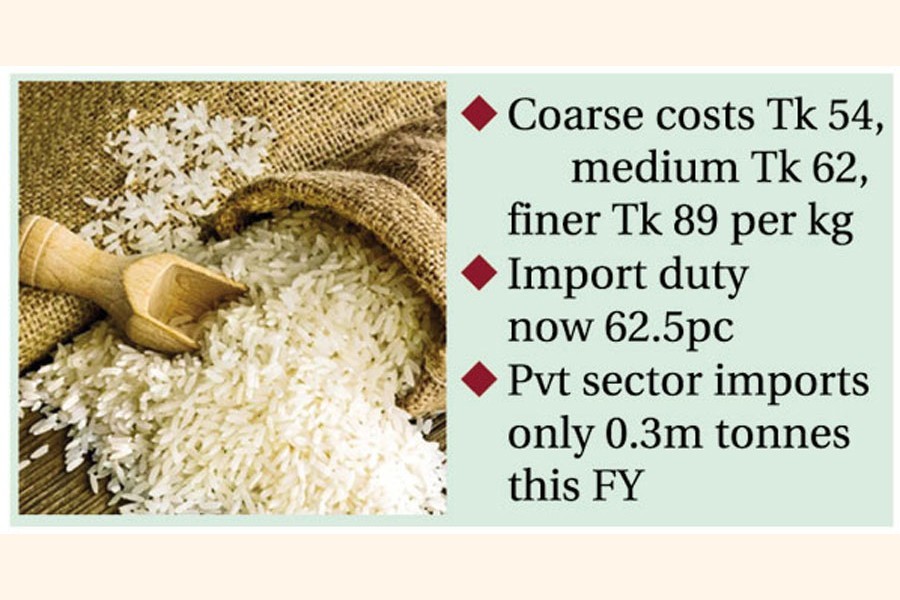 After October, the private sector almost stopped import as duty on rice was re-set at the previous rate of 62.5 per cent, according to insiders.