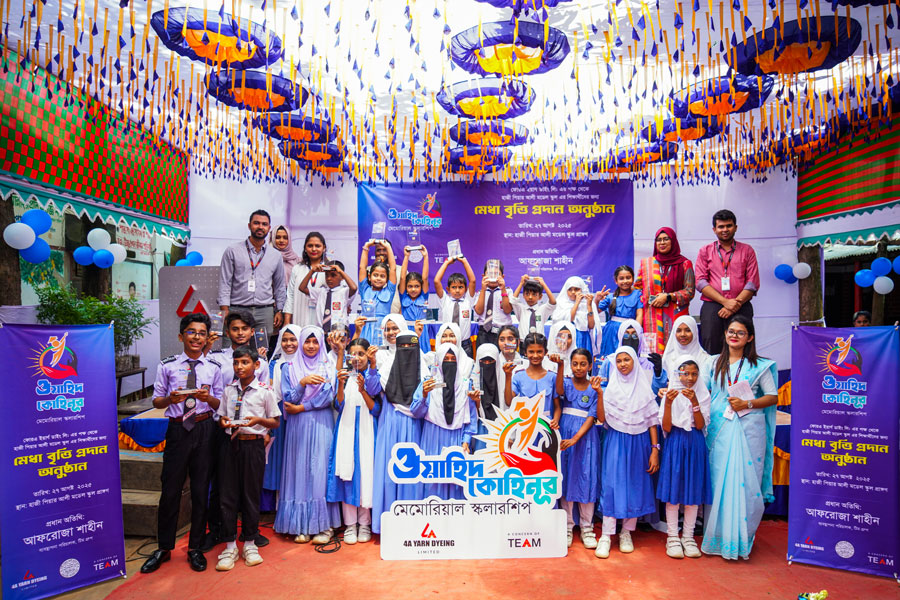 Team Group has awarded scholarships to 33 meritorious students from Hazi Piar Ali School, located adjacent to the company’s 4A Yarn Dyeing Ltd manufacturing facility in Savar.