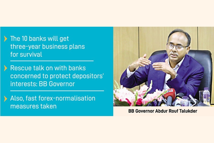 Ten of Bangladesh's banks have been diagnosed 'weak' and remedial action is underway to protect 'depositors' interests', according to a declaration made Thursday.