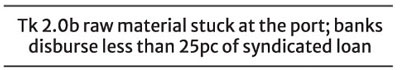 And as the banks fail to release the necessary documents Tk 2.0 billion worth of raw material consignments are stuck at the port for which the company is under burden of demurrage charges amounting to Tk 970 million, an official added.