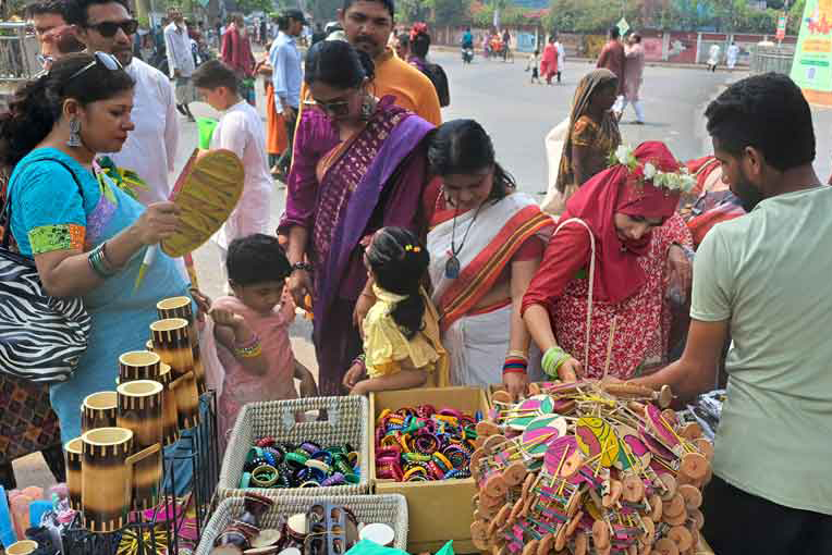 Customers and vendors were engaged in spirited haggling at the stalls in the area on Monday morning. The sight reminded some of the Boishakhi fairs of their childhood.