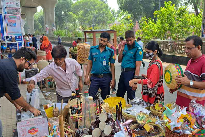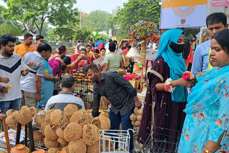 Bangladesh is celebrating Pohela Boishakh, the first day of the Bengali New Year, with a variety of events for the occasion. A hint of that festive feel can also be seen at the stores for craft goods at Dhaka University’s Doel Chattar.