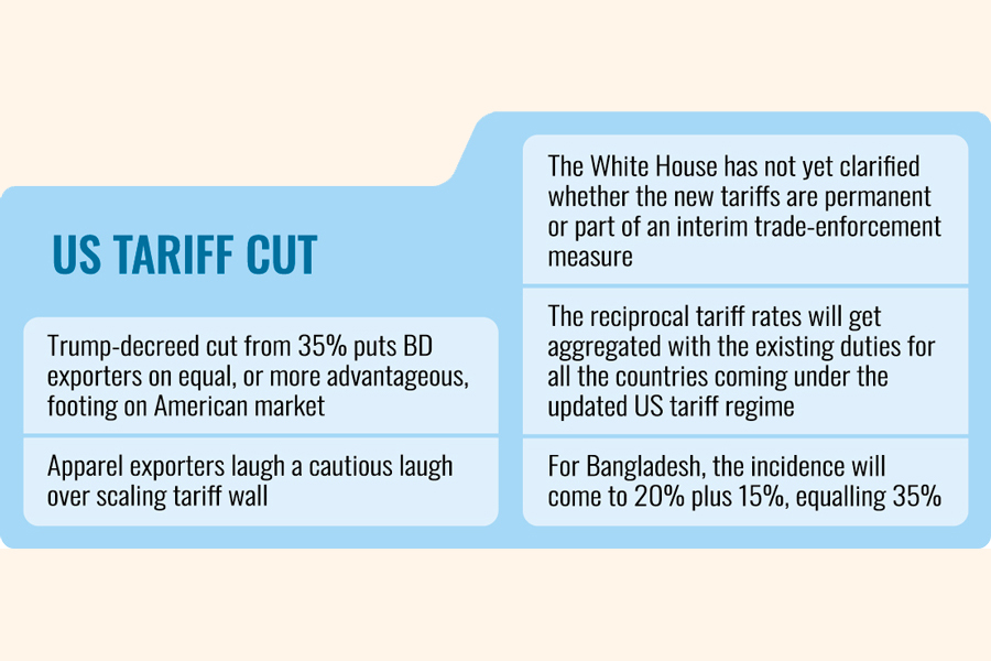 As the news flew fast into Dhaka, appreciation began to be aired from different circles concerned. The head of interim government, Prof Muhammad Yunus, said they "proudly congratulate the Bangladesh tariff negotiators on securing a landmark trade deal with the US".