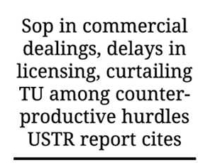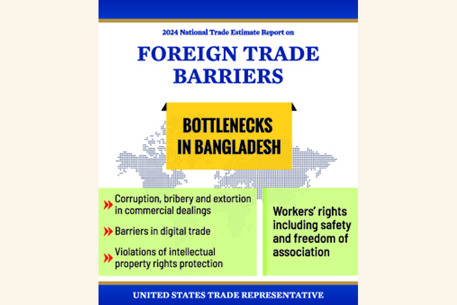 The latest report of the United States Trade Representative , styled 2024 National Trade Estimate Report, on foreign trade barriers mentions these barriers to promoting investment and foreign trade in Bangladesh, which Dhaka takes with exception, though.