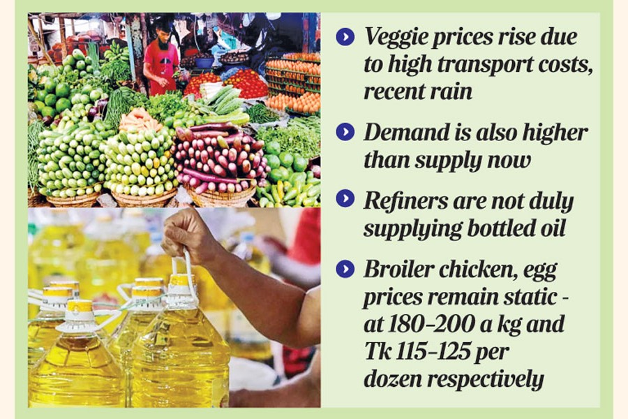 Prices of vegetables have increased further last week, while edible oil scarcity persisted as refiners are yet to supply bottled oil properly.