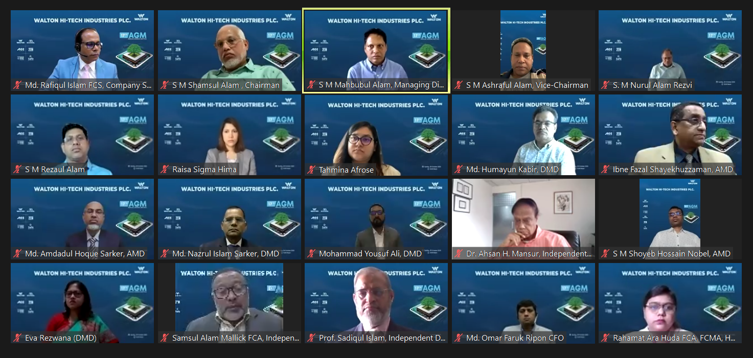 Walton Hi-Tech Industries' Chairman S M Shamsul Alam presided over the AGM while Company's Vice-Chairman S M Ashraful Alam, Managing Director S M Mahbubul Alam, Directors S M Nurul Alam Rezvi, S M Rezaul Alam, Tahmina Afrose Tanna and Raisa Sigma Hima, Independent Directors Dr. Ahsan H. Mansur, Samsul Alam Mallick, FCA, and Professor Dr. M. Sadiqul Islam, PhD, FCA were also present.