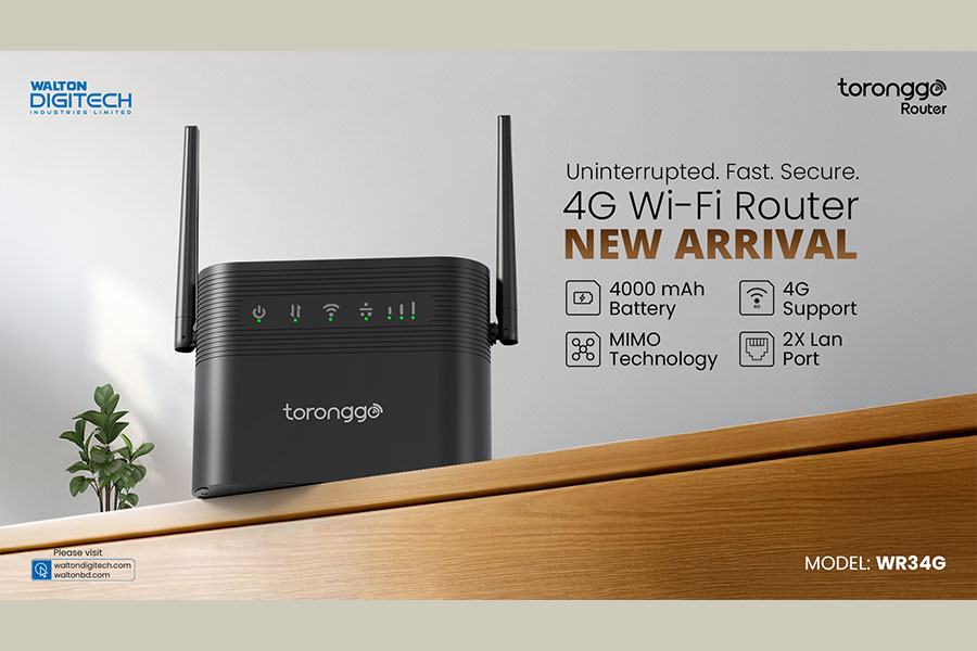 The newly launched WR34G model router of Walton's TORONGGO brand has powerful 4G LTE connectivity, which can provide a maximum download speed of 150 Mbps and upload speed of 50 Mbps.