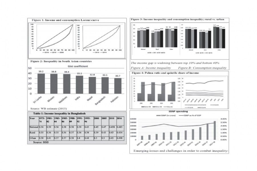 The government's first Perspective Plan (2010-2021) provides the road map for accelerated growth and lays down broad approaches for eradication of poverty, inequality and human deprivation. The 7th Five Year Plan (2016-2020) emphasises on policies, institutions and programmes that will support lowering of income inequality and empowering the citizens. It marks the second phase in the attainment of our long-term vision for accelerated but inclusive growth, and eradication of poverty, inequality and human deprivation. The 7th plan articulates renewed commitment to reversing the pattern of long-term increase in income inequality in Bangladesh. Reduction of inequality through broad-based participation in productive employment is one of the pillars on which the growth strategy of the 7th Five Year Plan rests. The income inequality is targeted to reduce or maintain at 0.45 or below during the 7FYP period.
