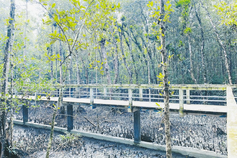 Our first station? The Andharmanik Eco Tourism Centre. It was green and diverse as the gigantic trees remained arranged over the reflecting sun, whilst we assembled inside the forest and were met with Sundari, Gewa, Goran and other varieties of trees lined up. Our path led us to a watch tower right in the center, allowing our eyes to swoon over the gorgeous sight of the lake positioned among the lush green life. Our first day concluded as our captain anchored the vessel in a safe and suitable area at the Kotka forest station.