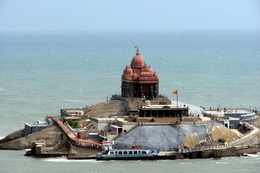 In the afternoon, it was time for paying a visit to the sunset view point of Kanyakumari Beach. Here is a beach from where the sunset is observed. It is about 40 minutes' drive from Vivekananda Kendra. Again, we were unlucky to have a glimpse of the setting sun. Clouds even restricted the spread of sun rays. But the evening was well spent on boulders that allowed us to touch water circling round them. In that fading dusk, Rabindranath's last poem where the same question of the day one is repeated after years on the shore of the western sea and in the evening silence, "who are you?', there was no answer" unrolled like a celluloid in my mind's eye.