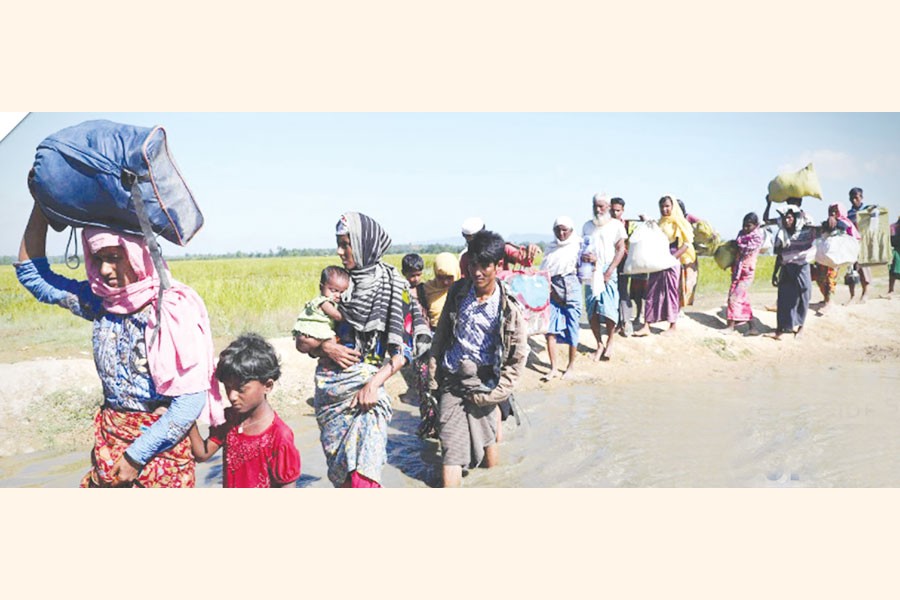 The Forcibly Displaced Myanmar Nationals (FDMN) in Bangladesh are in one of the largest protracted refugee situations in the world with an estimated 1,162,939 Forcibly Displaced Myanmar Nationals (FDMN) living in 33 overcrowded camps in Ukhiya and Tekanf subdistrict of Cox's Bazar and in one camp on the island of Bhasan Char under Noakhali district. The situation changed in 2024-2025 when the military wing of the United League of Arakan (ULA) and the Arakan Army (AA) consolidated and expanded its area of control following the 2021 Myanmar military coup. By early 2025 the AA controlled major territorial gains in Rakhine State, and, crucially, key areas on the border between Bangladesh and Myanmar.