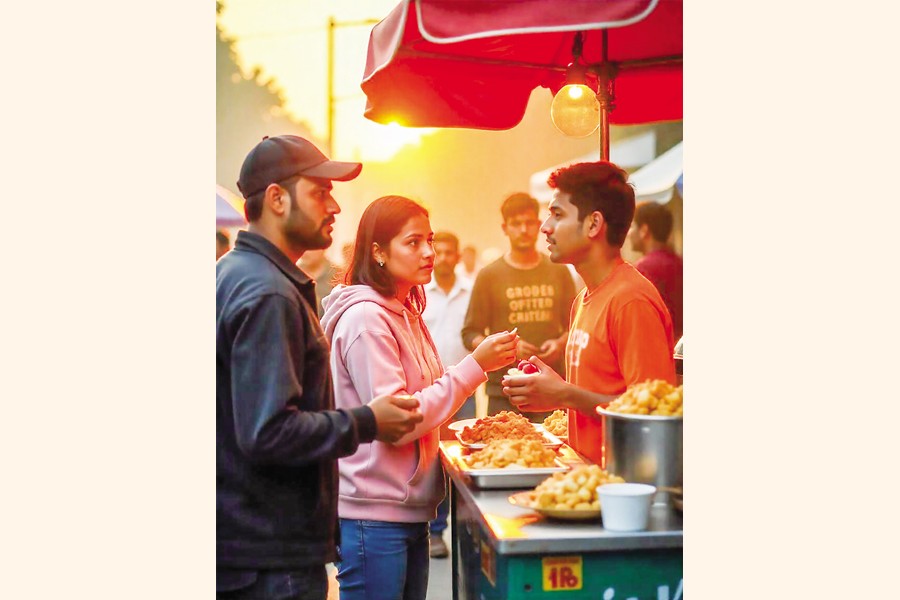 Dhaka's street food has a long tradition. But it is Old Dhaka, particularly the area comprising Shankhari Baazar, Chawk Baazar, Patuatuly, Mitford etc., that has boasted an unrivalled status in catering for Dhakaites' gastronomic satisfaction. Other neighbourhoods in the city hardly ever came to limelight for offering such diverse mouth-watering victuals. Of late, though, things have changed and changed so much that some areas in the evening are abuzz with a young generation of food lovers who turn the entire locality into a food fest venue. It happens every evening.