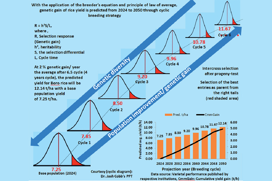 CONCLUSION: For Bangladesh, modernising rice breeding is not merely a choice-it is an urgent necessity. As the population grows and environmental challenges become more severe, the country must embrace innovative breeding strategies to secure its food future. By adopting cutting-edge technologies such as recurrent genomic selection, CRISPR-CAS, and bioinformatics, and committing to sustained investment in research and infrastructure, Bangladesh can break the yield ceiling and ensure food security for generations to come.