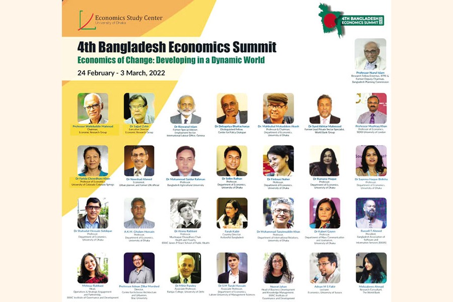 The 4th Bangladesh Economics Summit (BES), organized by the Economics Study Center (ESC), DU, was held virtually from 24th February 2022 to 3rd March 2022, exploring this year's theme, "Economics of Change: Developing in a Dynamic World." The summit, which acts both as a forum for students to apply their theoretical knowledge in economics and a platform for the dialogue between students and experts, comprised public lectures, multiple heavy-weight panel discussions, policy debate, international research paper presentations, essay and policymaking competitions, and a special message from Professor Nurul Islam, Deputy Chairman of the first Planning Commission of Bangladesh in the closing session. In consideration of the ongoing pandemic, the summit was hosted virtually.