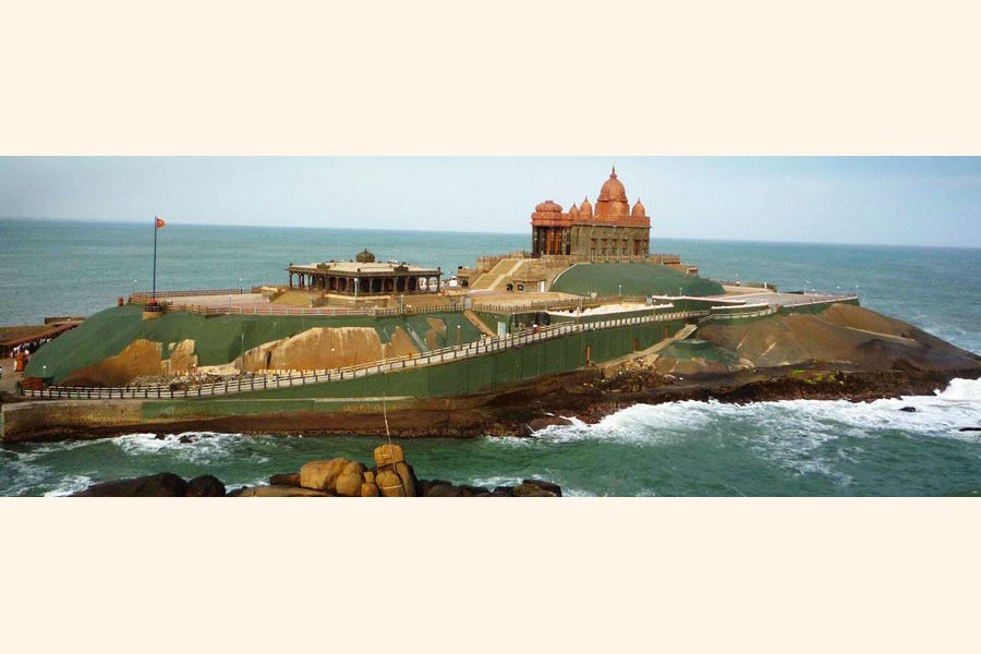 As we approached nearer, I became aware of the thrill and a sense of self-discovery I experienced when I first set foot on the southernmost tip of the landmass called the Indian subcontinent in 1996. Will my son and daughter feel the same way? I pondered. But by this time we were dead tired and our biological need was overpowering. Gnawing hunger, sleeplessness and time lapse took over our mortal selves. It was 9:40 am when we reached the bus station from where, we were told, we have to travel another 20 or so kilometres to look for our accommodation at the Vivekananda Centre. But the drive seemed to be unending and although the drive was on a narrow road winding through corn fields in pleasant weather, we were in no mood to enjoy the drive. Moreover, we had no prior reservation for rooms and therefore were not free from anxiety. If there was no room available at this time of summer school vacation in India! Language barrier almost cost our car facility we were entitled to with the bus tickets. We were actually bargaining for the bus company's car that was supposed to take us to Kanyakumari, forgetting that our driver repeatedly reminded us not to pay for the car ride. But for the bus driver's timely intervention, we were saved from the extra hassle. They asked Tk 700.00 for taking us to our resort but now could ride without paying a single rupee.