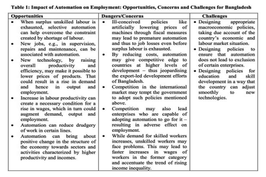 The flying geese model mentioned above seems to have been reflected in the development pattern that unfolded in Asia and can be expected to characterise the sequence in which countries at different levels of development progress in their journey towards higher level of development. A moot question in the debate on the impact of automation on employment in a country like Bangladesh is whether the flying geese formation will be broken by the latest technological development. Can countries like China and Malaysia prevent their loss of comparative advantage in certain product lines by resorting to automation? If that happens, are countries like Bangladesh and Viet Nam going to follow suit and adopt automation on a large scale in order to match the competitiveness of the geese flying ahead of them?