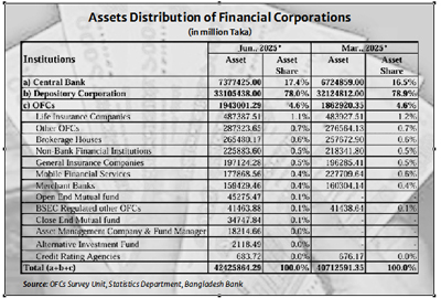Bangladesh Bank began collecting and compiling statistics on OFCs a few years ago. At the end of FY18, the central bank compiled data on the assets of 151 OFCs out of 771 financial institutions. For the first two and a half years, the statistics were compiled on a half-yearly basis; since December 2020, they have been compiled quarterly.