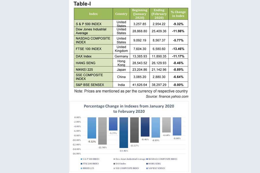 Indexes of international capital markets plummeted drastically during January and February as COVID-19 continued to spread, raising fears that the epidemic will wipe out corporate profits and push some of the world's biggest economies in recession. Companies around the world are cutting production and cancelling conferences to limit the outbreak's spread.