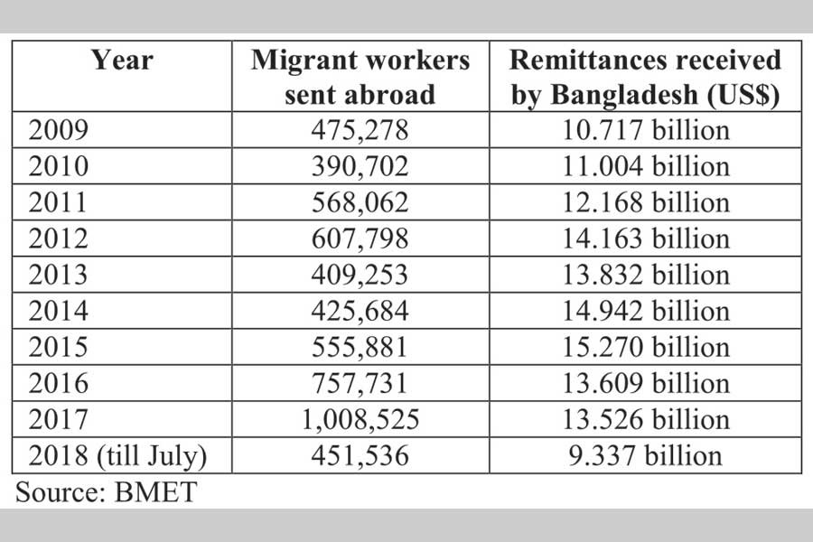 On an average, around 500,000 to 700,000 people from Bangladesh migrate to other countries every year, seeking employment in a number of professions in various sectors. According to the Bureau of Manpower, Employment and Training (BMET), over 451,536 people have migrated to different parts of the world till the month of July this year. This number stood at 1,008,525 in 2017 and 757,731 in 2016.