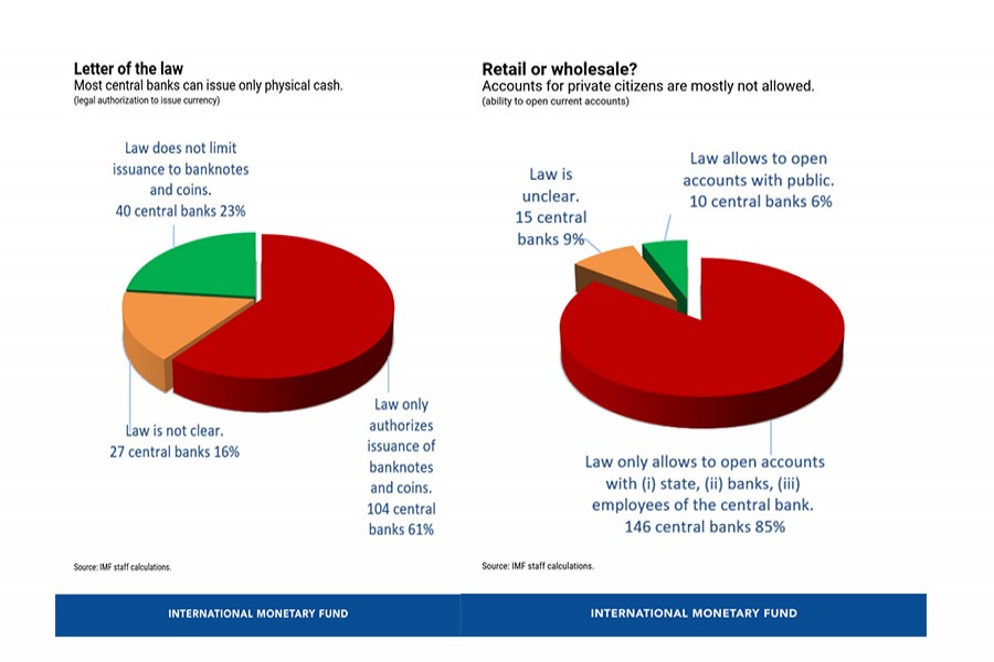 To help countries make this assessment, we reviewed the central bank laws of 174 International Monetary Fund (IMF) members in a new IMF staff paper, and found out that only about 40 are legally allowed to issue digital currencies.
