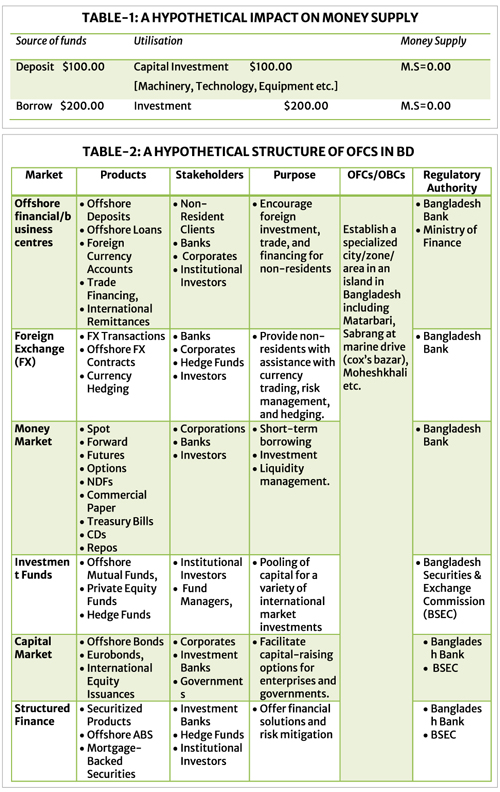 However, it also raises concerns about capital flight, money laundering, and regulatory flaws that could jeopardise Bangladesh’s financial system’s stabilisation. OFCs are well known for ‘hiding tax liabilities or ill-gotten gains from authorities’. In this connection, the establishment of a strong regulatory framework, meticulous risk management protocols, and international collaboration are necessary for the effective implementation of OFCs in Bangladesh.