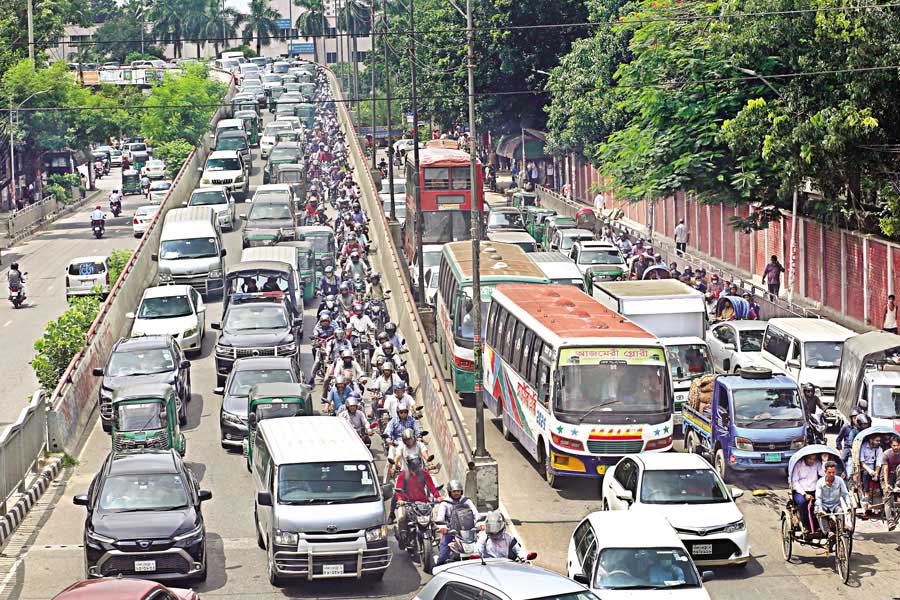 However, it is also not the first time that similar efforts were made to this end, some with a lot of fanfare, but it all came to nothing. The fact that all previous attempts to resolve Dhaka's traffic crisis fell through does not mean that it has no solution. In neighbouring India, megacities like Kolkata and Delhi had similar, even worse, traffic problems. But those cities have successfully cleaned up their traffic mess. The most important thing required to resolve such a problem, however intricate it may seem, is the political will. The failure of the past moves to straighten up Dhaka's traffic system had mostly to do with behind-the-scenes political wheeling and dealing. It was often the lack of 'good will', if not the will as such, that came in the way of many past plans and projects, especially to improve the capital city's public transport system, which in fact is the key to addressing Dhaka's traffic anarchy. Most importantly, the city's traffic problem is not simply about malfunctioning signalling system. One would find too many vehicles at any busy road crossing jostling with one another for space. Among those are private cars, which carry few passengers, but occupy disproportionately larger amount of road space. Two cars, though they carry only 4 to 6 people, use road space equivalent to that of a bus that carries 40 to 50 passengers. Private cars on the city roads are obviously misusing precious road space. Even so, private car population of the capital city has been growing by leaps and bounds. According to an estimate, the number of private cars in the city has about doubled between 2010 and 2024. Currently, there are around 350,000 registered private cars in the city. Many of these cars belong to people who do not fall in category of the rich. In fact, some of these people took bank loan to buy car to avoid the uncertainties, hassles and insecurity of travel by public transports. For similar reasons, the number of motorbikes on the city roads is exploding. Add to them other motorised and non-motorised vehicles whose numbers are also on the rise. Against this backdrop, should one think of addressing the city's ever-worsening traffic nightmare?