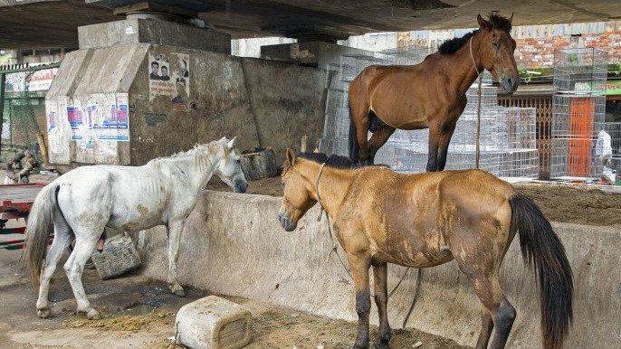 The horse in mythology is linked to strength and freedom. But in reality, it is used only as a draft animal. Dozens of horses are engaged to pull carriages in the capital city alone. Of them, 50 are seen on the Gulistan-Sadarghat road. Most of them are uncared for. A number of horses are on the Cox's Bazar seabeaches to entertain tourists. Many of those, too, are malnourished. There are allegations that many owners do not provide sufficient food for these horses and set them free to roam around the town of Cox's Bazar to find their food. As a result, these horses become sick and weak by eating rotten and toxic foods from the dustbins. According to the Horses Owners Association, a total of 26 horses died between the beginning of the Covid-19 pandemic and mid-2021, thanks to their owners' neglect.