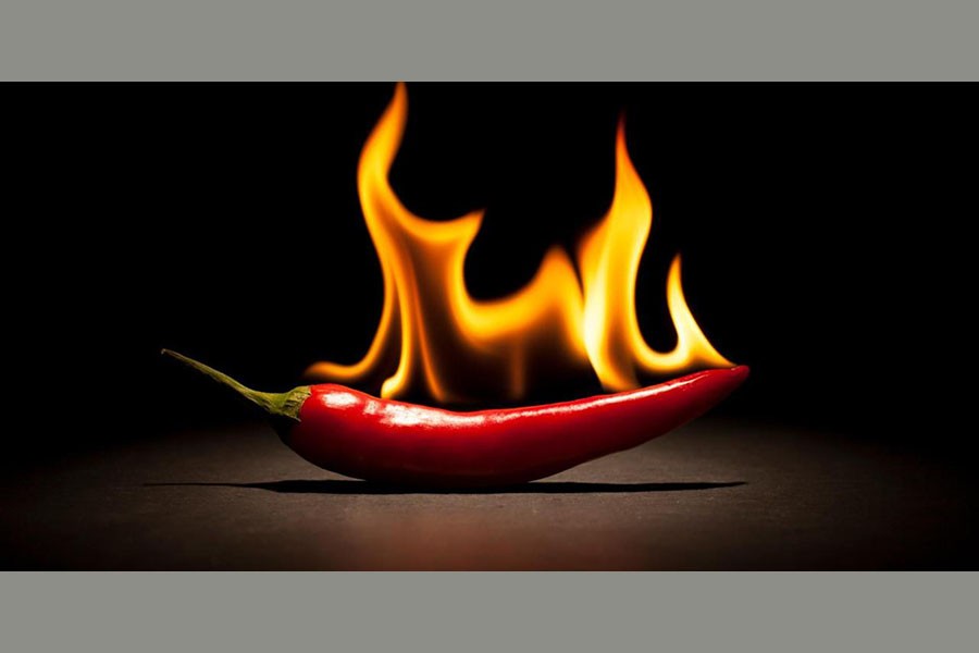 All varieties of green chillies are at their hottest now -hotter than Carolina Reaper which holds the current Guinness world title for Scoville Heat Unit (SHU), a measure of spiciness, in Bangladesh. Has anyone ever imagined that the price of this common spice can cross the Tk 200 a kilogram mark? Last week its going rate was Tk 280 a kg and if things allowed to continue like this, it is likely to cross the Tk 300 mark. The intensity of the burning sensation in the mouth appears to be no match for the heat generated by the price in the kitchen market.