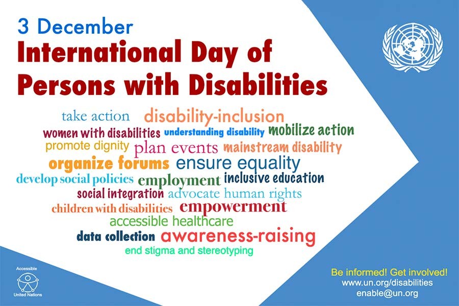 At present, world population is over 7 billion and more than 1 billion people live with some form of disability. More than 100 million disabled persons are children and 50 per cent of the disabled persons cannot afford health care. In this reality, the International Day for the Persons with Disabilities 2019 is being observed in more than 177 countries around the world that have ratified the UN Convention on the Rights of Persons with Disabilities. The theme of the International Day for the Persons with Disabilities for 2019 is: "Promoting the Participation of Persons with Disabilities and Their Leadership: Taking Action on the 2030 Development Agenda." The theme of this year puts special emphasis on the empowerment of persons with disabilities for inclusive, equitable and sustainable development as envisaged in the Sustainable Development Goals (SDGs), which pledge to 'leave no one behind' and recognise disability as a cross cutting-cutting issue to be considered in the implementation of its 17 goals.