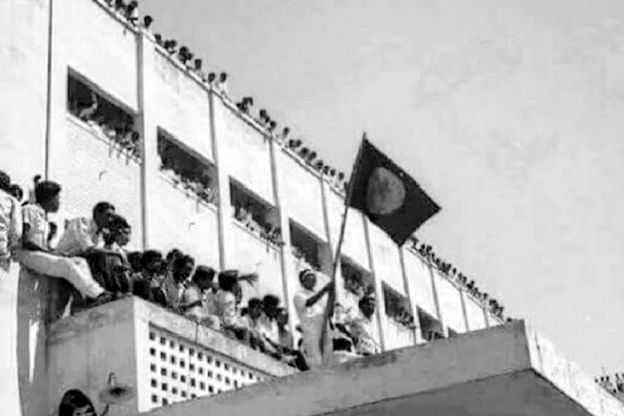 Earlier, the four student leaders jointly raised the flag on the Dhaka University campus in the morning. Until then, the 'separate state' of Bangladesh had been an intangible reality. On March 3, 1971, it gained the status of tangibility. The reality of Bangladesh or Bengal became more concrete in the historic 7th March speech by Bangabandhu Sheikh Mujibur Rahman at the Racecourse Ground. Before coming to the declaration of independence, Sheikh Mujib narrated the background of the decision, especially the dillydallying technique of the rulers in handing over power to the newly elected Bengalee dominant parliament. It was from this venue that Sheikh Mujib declared the indefinite Non-cooperation Movement. The whole Bangladesh joined the movement spontaneously; and it continued until the evening of March 24, the following night being one of the darkest ones in the history of Bangladesh. The night of 25th March coincided with Pakistan army's letting loose one of the barbarous genocides on the sleeping people of Dhaka. It later spread to the other parts of the occupied Bengal.