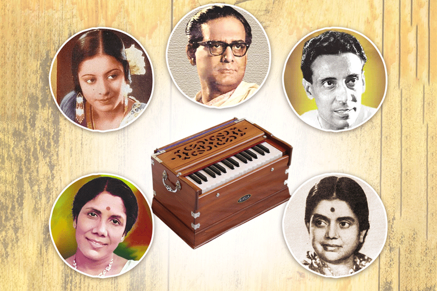 EnD note: Kishore Kumar (1929-87) and Manna Dey (1919-2013) have not been discussed in this piece because they devoted their talents mostly to Hindi cinema. For brevity’s sake, the songs of the king of pathos Satinath Mukherjee (1923-92, “Jibaney Jodi Dwip Jalatey Nahi Paro”, lyrics: Gauriprasanna Mazumdar), the quest for deeper love of Manobendra Mukherjee (1929-92, “Ami Eto Je Tomay Bhalobeshechhi”, lyrics: Shyamal Gupta), and other legendary singers like Torun Banerjee, Dwijen Mukherjee, Dhananjay Bhattacharya, Subir Sen, Arati Mukherjee, Sabita Chowdhury, , Alpana Banerjee, and Anup Ghoshal have also not been addressed here.