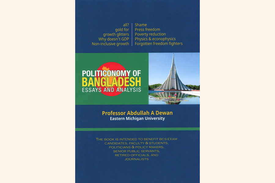 At long last a must-read book titled as Politiconomy of Bangladesh by Professor Abdullah A Dewan has landed on the soil of Bangladesh. The book is a compilation of newspaper columns about Bangladesh economy and political spectrum. Professor Dewan teaches at the Eastern Michigan University in the US. Formerly a physicist and a nuclear engineer at Bangladesh Atomic Energy Commission, he received his B.Sc. (hons) and M.Sc. (phys) from Dhaka University, M.S. (nuclr tech) from Islamabad University, M.S. (nuclr engr) from North Carolina State University in 1980 and Ph D (econ) in 1985 from the University of Kentucky, Lexington, Kentucky, USA.