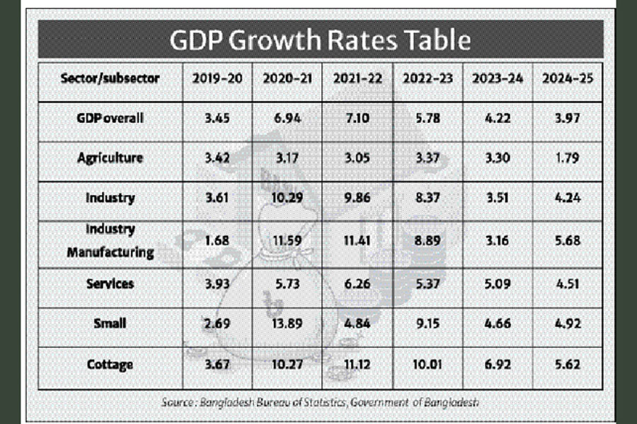 Regarding GDP data, it may be stated that overall GDP is constantly growing but growth rate is on the decrease. Negative growth rates indicate decrease in production and the data presented here show no negative trends of GDP growth. Sectoral analysis reveals that over the last five years, industry and services grew at a decreasing rate. Borrowers of these sectors cannot argue that they experienced fall in production and income. The same applies to small and cottage industry. This macro scenario hints that borrowers' repayment capacity or ability had not decreased as a whole , rather grew at a deceasing rate. The Non-performing loan ( NPL) ratio of 36 per cent is not compatible with the trends of GDP growth rates . Repayment inability may prevail in a very limited scale but is not applicable to all defaulters.