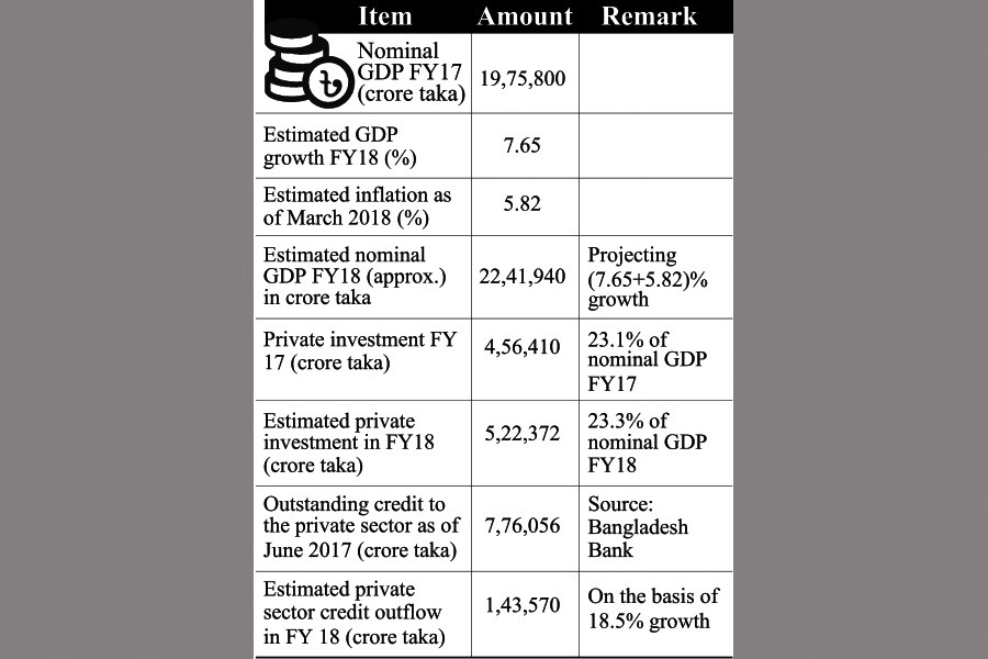 As the numbers in the Table show and as would be expected, the estimated private investment in FY18 is much higher than the estimated supply of credit to the private sector. One needs to remember that neither all private investments are financed out of credit, nor all private sector credits go to finance investment. The levels of domestic and national savings well explain the gap between private investment and credit to the private sector.