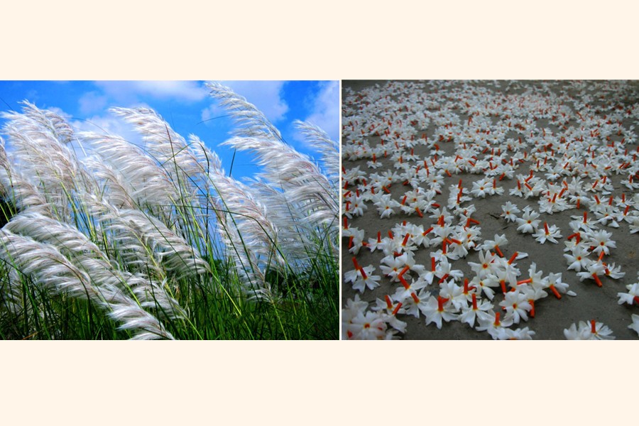 A man's place in this universe is a unique occurrence. Paying tribute to the living world and the cosmos is an expression of gratitude. One gets enriched in the process. Some of the wonders of the world are so obvious that almost all people notice them -more or less. The autumn sky is one such phenomenon when the kash and sheuli flowers on the ground look up at the white clouds to borrow some of their whiteness and compel people to look at them too. Thus a bridge is built between the heaven and earth and man can feel grateful to know how blessed he is with so much to appreciate all around.