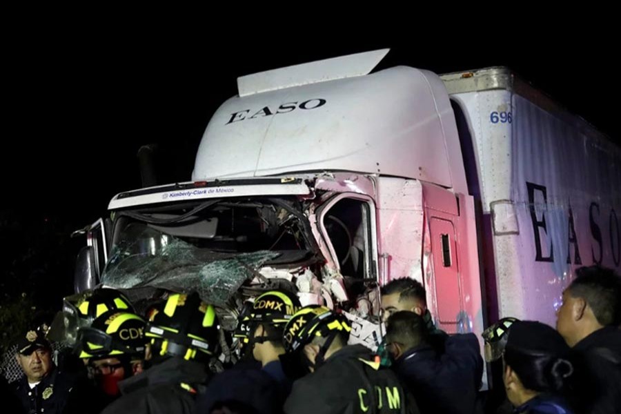 At least 10 people were killed and 17 others injured when about 10 cars were piled up late Wednesday on a Mexico City highway after a trailer truck's brakes failed, local authorities said Thursday.