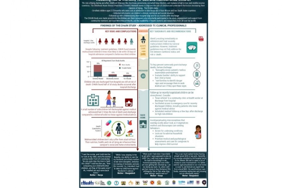 "The finding that many children die after being discharged from hospital is tragic. This calls for a review of the treatment guidelines and for home-based interventions to prevent these unfortunate deaths," said Dr Tahmeed Ahmed, executive director of icddr,b (formerly International Centre for Diarrhoeal Disease Research, Bangladesh) and one of CHAIN's lead researchers.